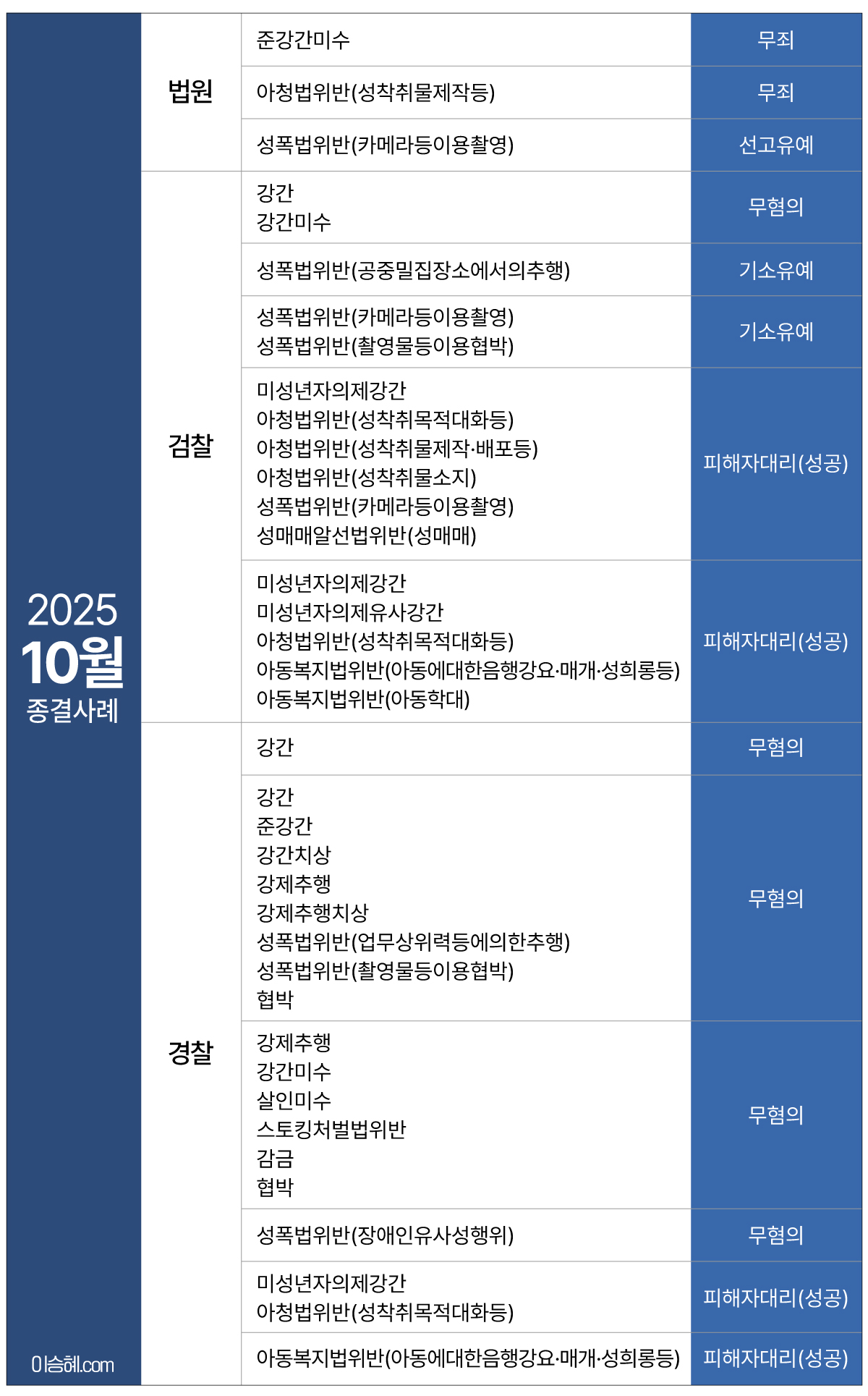 성범죄 전담 근무청 : 대검찰청, 서울서부지검, 서울북부지검, 대구지검, 광주지검, 의정부 지검, 충주지청